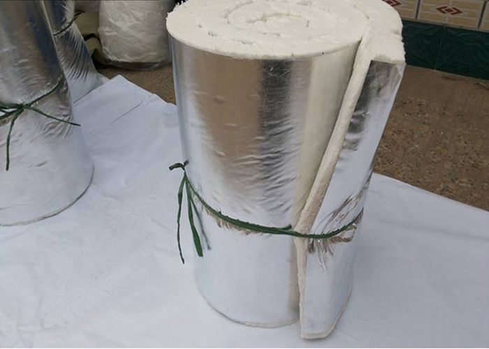 云緯覆鋁箔針刺毯是在現(xiàn)有陶瓷纖維計刺毯的基礎(chǔ)上利用專用機(jī)械,通過專用粘結(jié)劑將金屬鋁箔平整地覆到針刺毯表面形成的一種復(fù)合產(chǎn)品。由于在針刺毯表面增加了一層致密 的金屬鋁箔層,有效屏蔽了熱量透過纖維毯向空氣的對流,對輻射熱量形成有效反射,從而極大地提高了產(chǎn)品的絕熱性能。